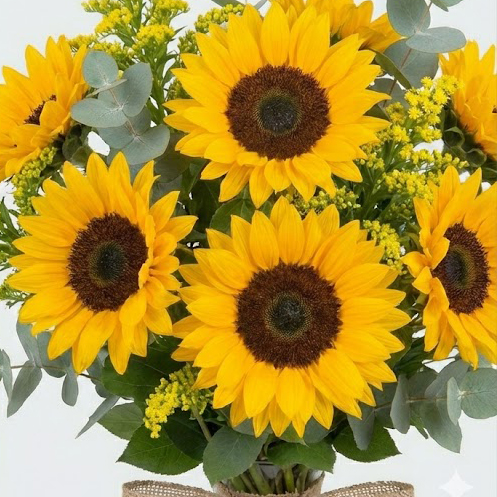 A cheerful and vibrant bouquet that radiates happiness, starring large, sunny yellow sunflowers. It's a perfect pick-me-up and a celebration of summer.
